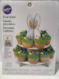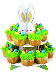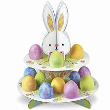 Alzatina a 2 piani in cartone contenente fino a 24 cupcakes, muffin o altro. Ideale per presentare e servire le proprie creazioni. A tema pasqua, ha il disegno di un coniglietto.