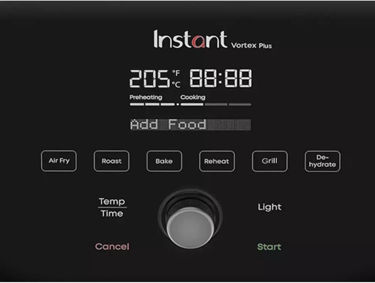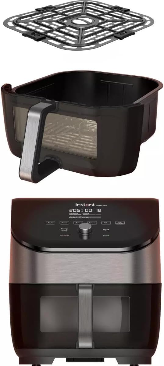 La confezione contiene: friggitrice ad aria Instant Pot Vortex da 5,7 L, con display digitale, cestello e teglia antiaderenti lavabili in lavastoviglie.