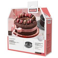 Stampo a cerniera da 28 cm INSPIRATION by KAISER, ottima rivestimento antiaderente, protezione sicura da fuoriuscita impasto, distribuzione omogenea del calore. Doppio fondo utilizzabile o per torta classica o per ciambella.