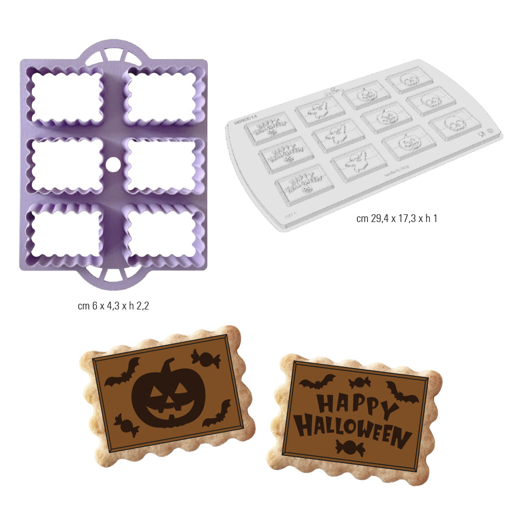 Set da 2 pezzi perfetto per realizzare in modo semplice e veloce delle gallette ricoperte con una placchetta di cioccolato personalizzata. Il set è composto da un tagliapasta multi-sagoma con pratici manici laterali, per realizzare la base del biscotto ed uno stampo termoformato per sformare dei cioccolatini a tema.